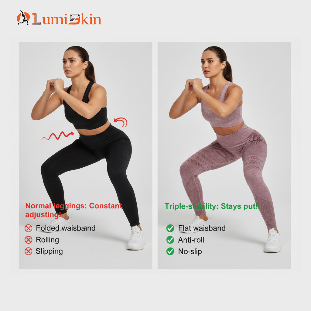 Yes wide waistband + anti-slip structure reduces rolling and sliding during movement.